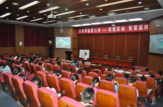 2014年5月14日,晩7:00~9:30,在山東大學中心校區(qū)氣派的知新樓思源報告廳內(nèi),在就業(yè)指導中心王紀磊副主任、生命科學院韓春岫副書記、博導宋欣教授的見證下,二百余名學子,靜靜聆聽老校友湯傳忠先生作<讀懂職場,智慧應對>的專題報告會。二個小時的時間層層剝繭,深入淺出,其實,壓力沒有那么大,困難沒有那么多,人生是一場馬拉松,也不必那么急,讀懂了職場,完全可以從容面對、智慧應對。未來的路很長,走好人生的關鍵幾步,可以快樂工作,輕松生活,心燈點亮,夢想高飛,成人達己,游刃有余。
